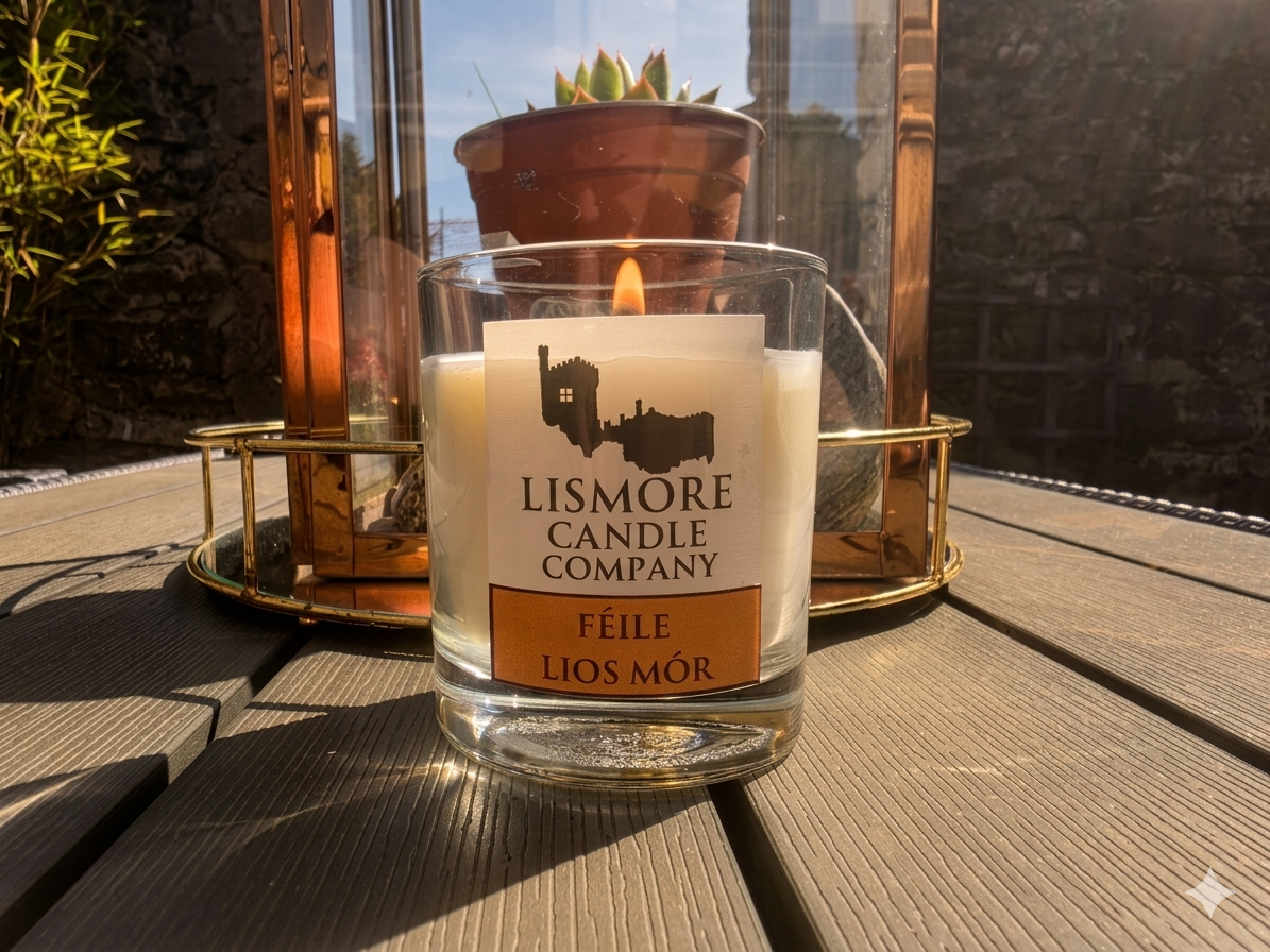Why not enjoy the summer months with this beautifully scented candle. Kerry's personal favourite scent to celebrate the Lismore Fleadh Cheoil Event happening this July in Lismore. With a mixture of Peach, Rhubarb, Blackberry, Plum and Pear, it brings a spectacular vibe to any home or garden. This beautiful and powerful scent needs little time to create a wonderful environment.